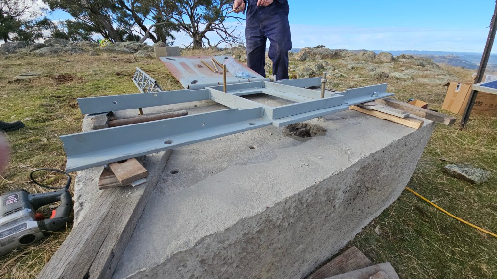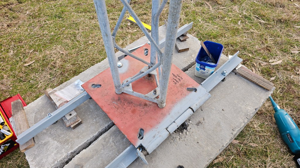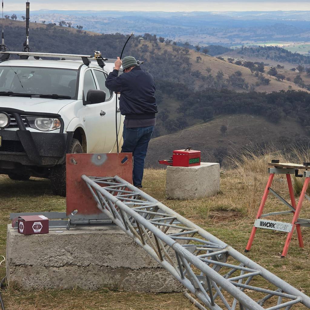 On the 13th of July 2024, the WACRS went ahead with a project to erect an “above-ground” tower, using six concrete blocks to keep the tower in place. The initial concept put forward by Glenn was for a portable tower whereby even the concrete guy anchors and the tower base could be transported to another site if need be. The tower currently stands approximately 10 metres high.