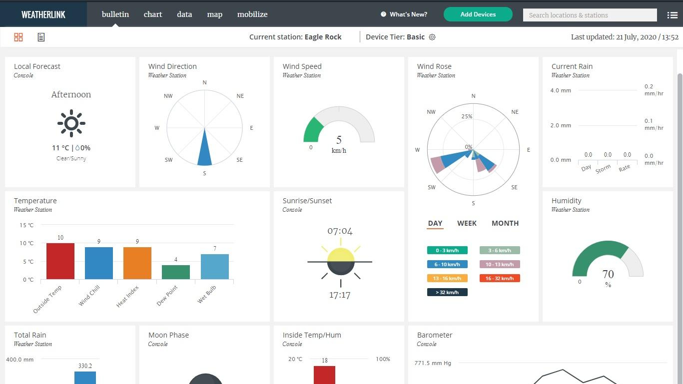 EagleRock is equipped with a Davis Vantage Pro2 weather station. You can view the console live by clicking the link below. You need to sign up, but it’s free.